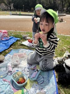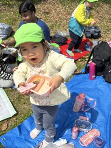 お家から持ってきたお弁当を「美味しい!」と言いながらパクパクと食べ